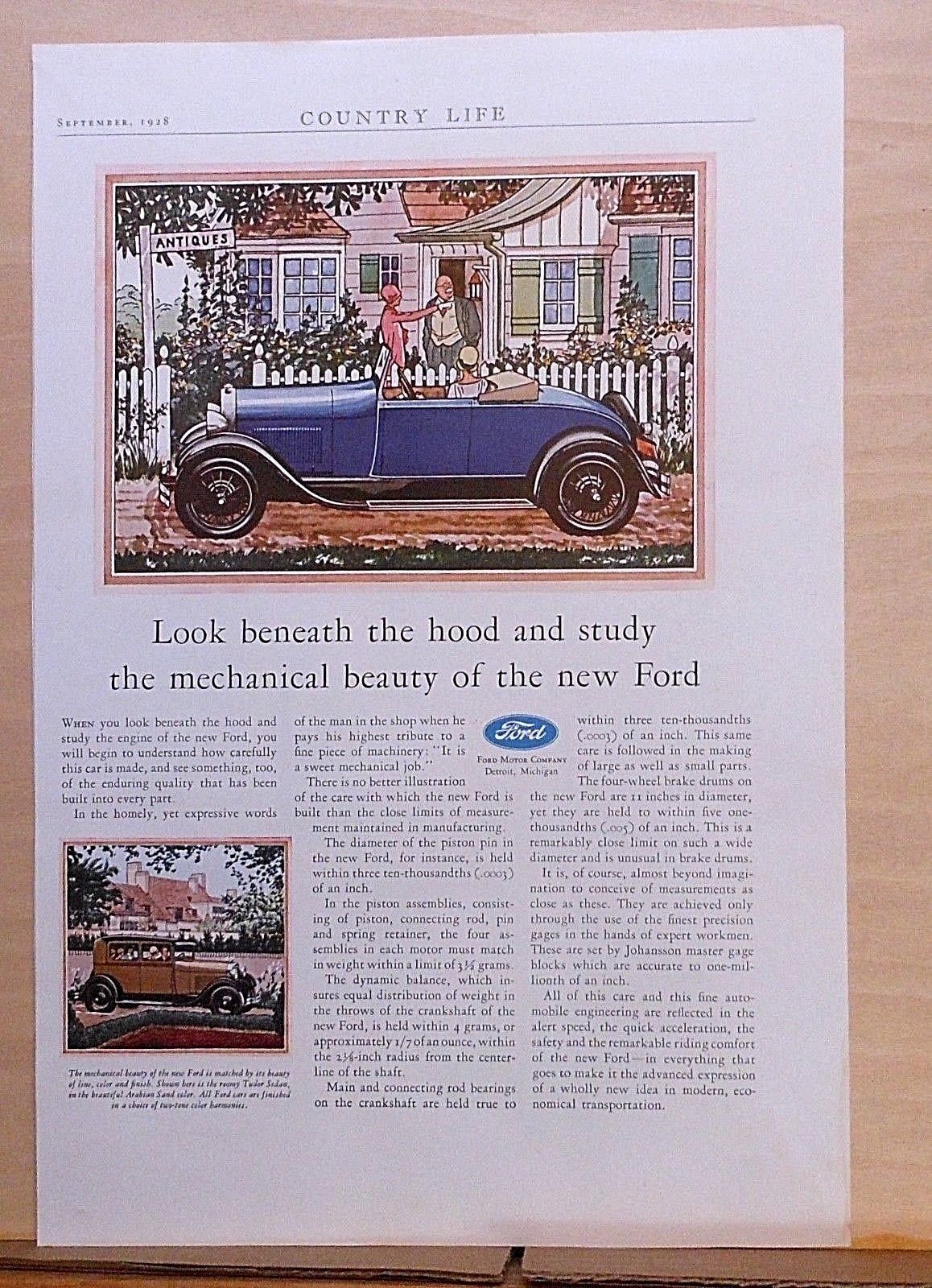 Title (ebay affiliate link): 1928 magazine ad for Ford - Mechanical beauty, Ford at country antique shop