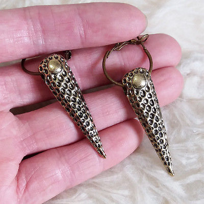 Title (ebay affiliate link): Cool Fashion Punky Antique-Brass Metal Color 4cm Long Sharp Stud Huggie Earrings