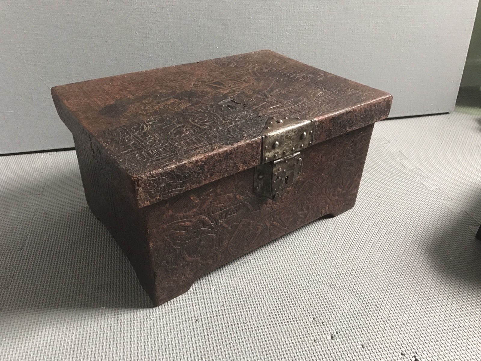 Antique Tooled Leather Casket Box Trunk Celtic Viking German Dragons