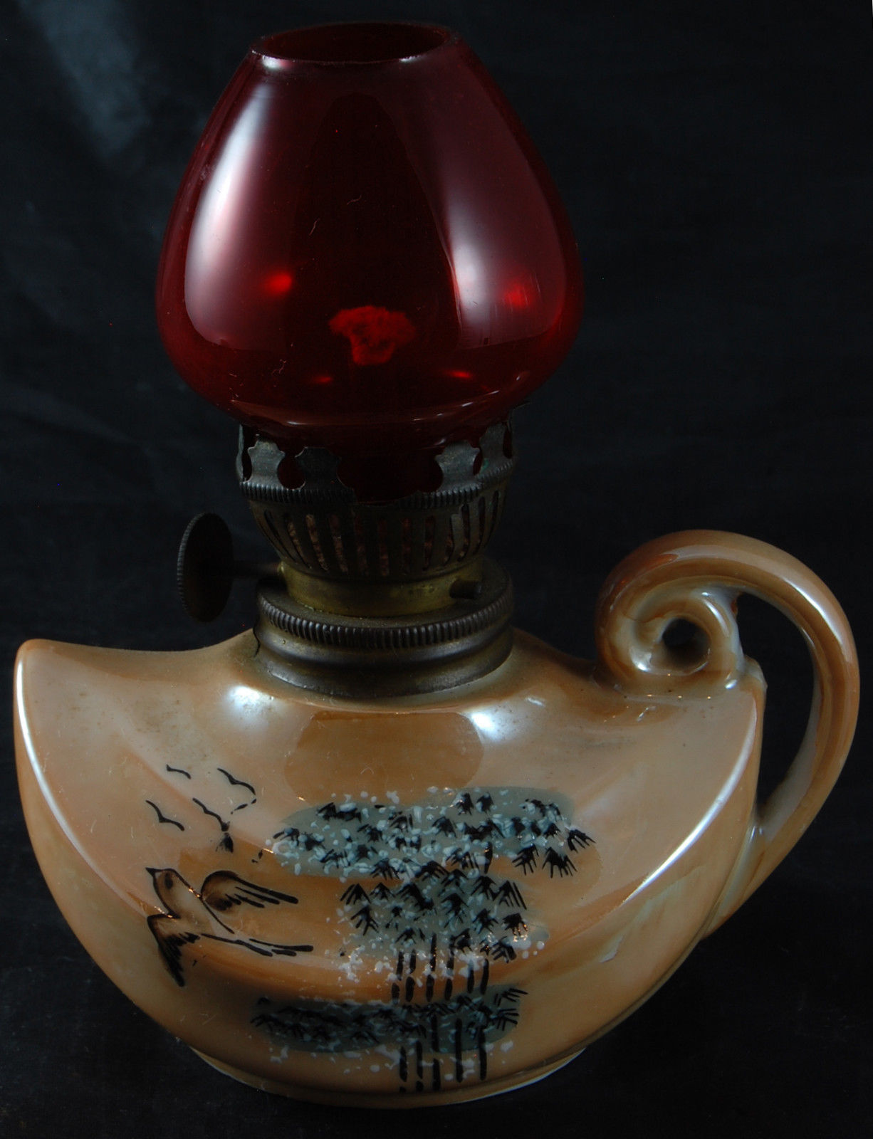 Title (ebay affiliate link): Vintage Miniature Oil Lamp - Alladin Style with Red Glass