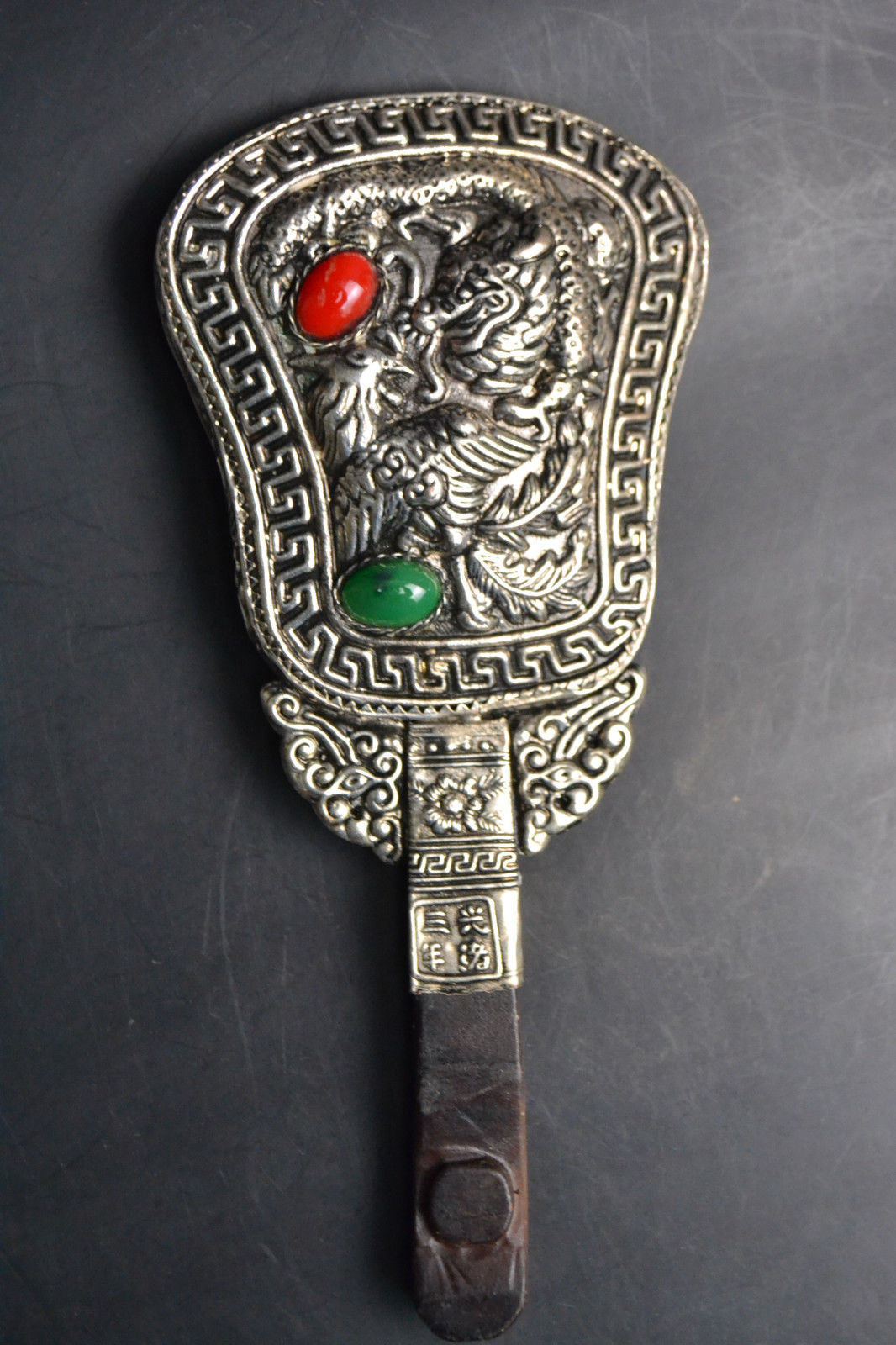 Title (ebay affiliate link): Collectible Old plate Tibet Silver inlaid jade carve dragon hand mirror beauty