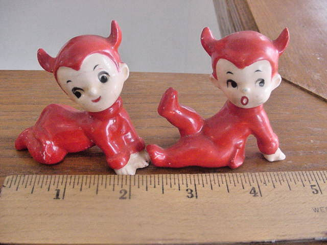 2 Vintage Porcelain Crawling Baby Devil Figurines