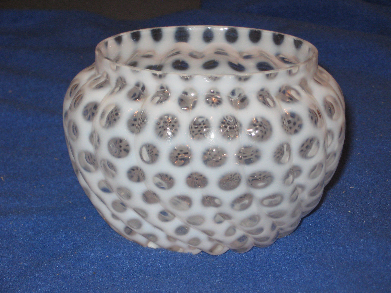 OVAL WHITE AND CLEAR SWIRL THUMBPRINT PATTERN VASE OR BOWL