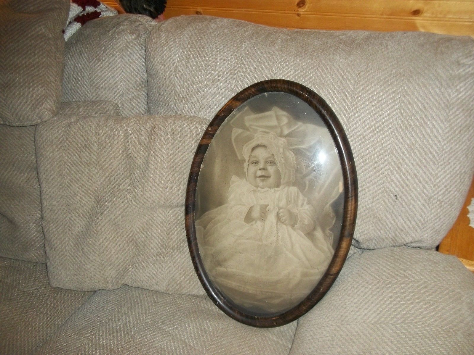 Vintage Bubble Glass Oval Picture Frame with Young Child Photo