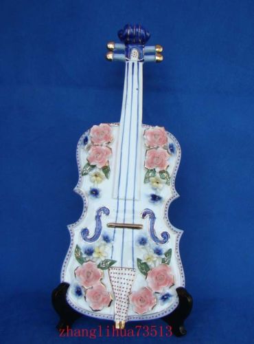 Chinese Handmade Porcelain violin Deco Art 18.11"