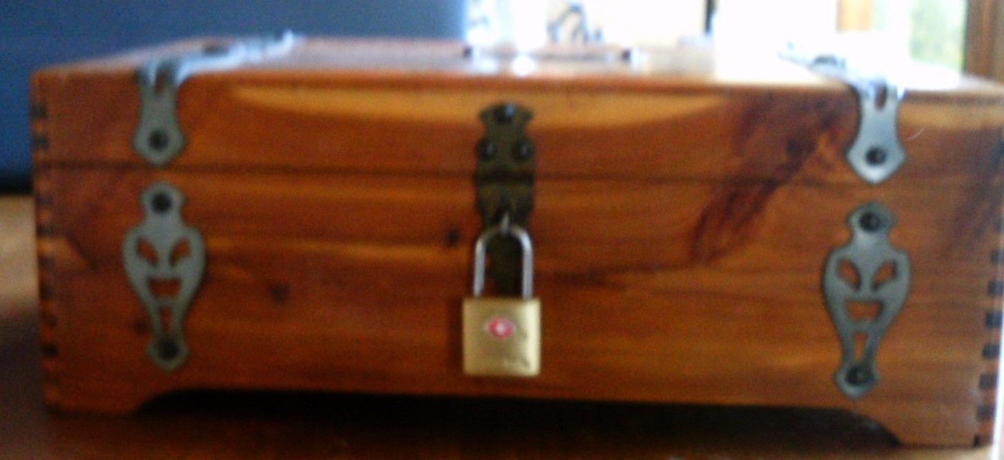 Antique Wooden Box with Lock and Key - Approx. 12"x8"x5"