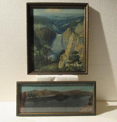 2 vtg Art Nouveau Wood Picture Frames with Landscape Prints and Glass ca. 1920`s