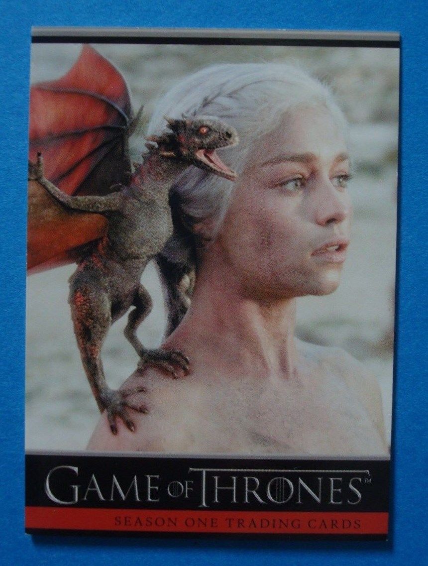 Title (ebay affiliate link): 2012 **GAME Of THRONES** Season 1 PROMO Card #P1 Dany TARGARYEN Clarke DRAGON