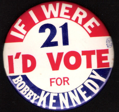 Title (ebay affiliate link): large IF I WERE 21, I'd VOTE for Bobby KENNEDY button