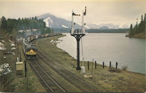 Title (ebay affiliate link): Northern Pacific Railroad EMD Freight Train Yakima Reservoir Washington Postcard