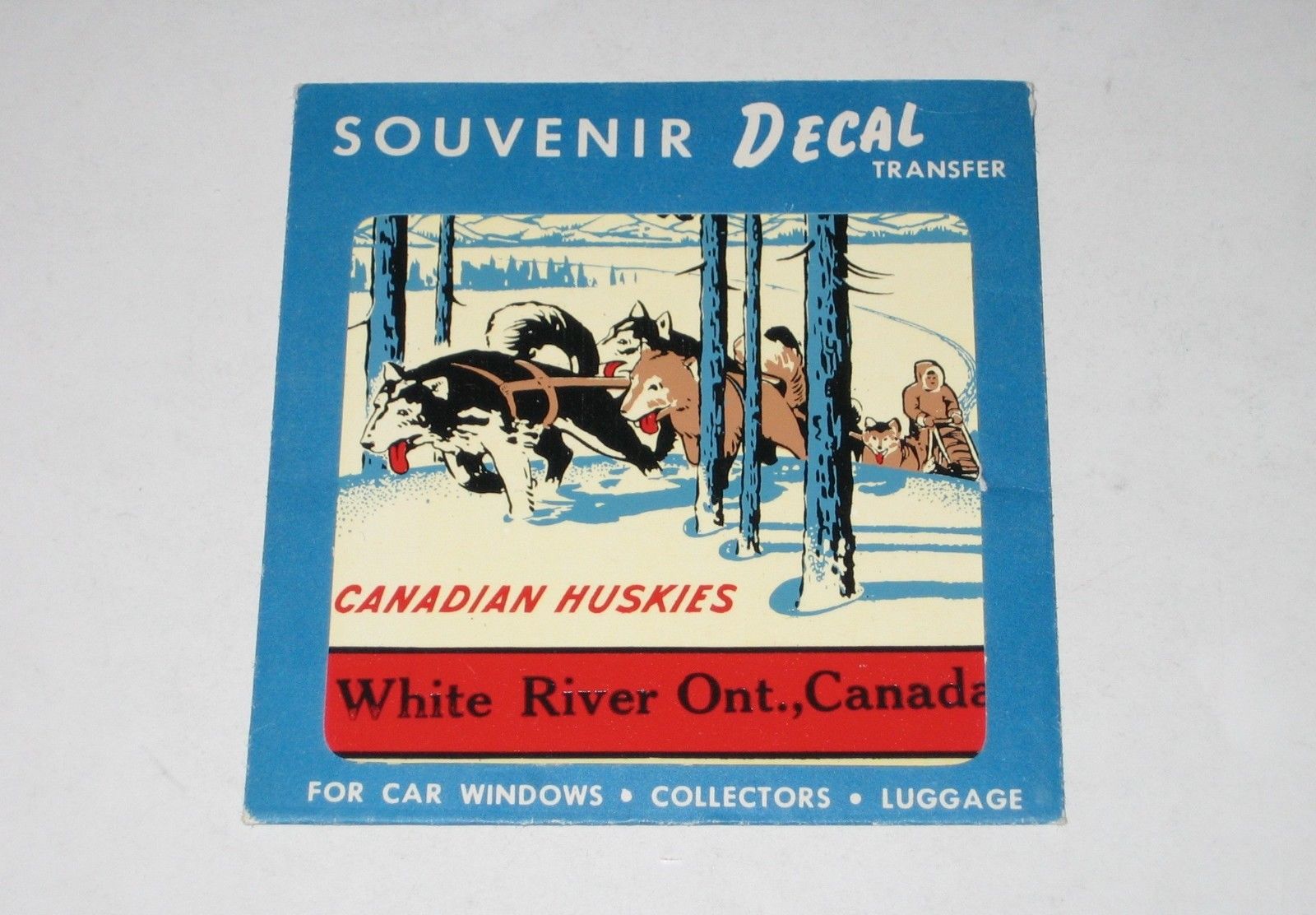 Vintage WHITE RIVER Huskies Dogs TRANSFER DECAL Made in TORONTO Canada