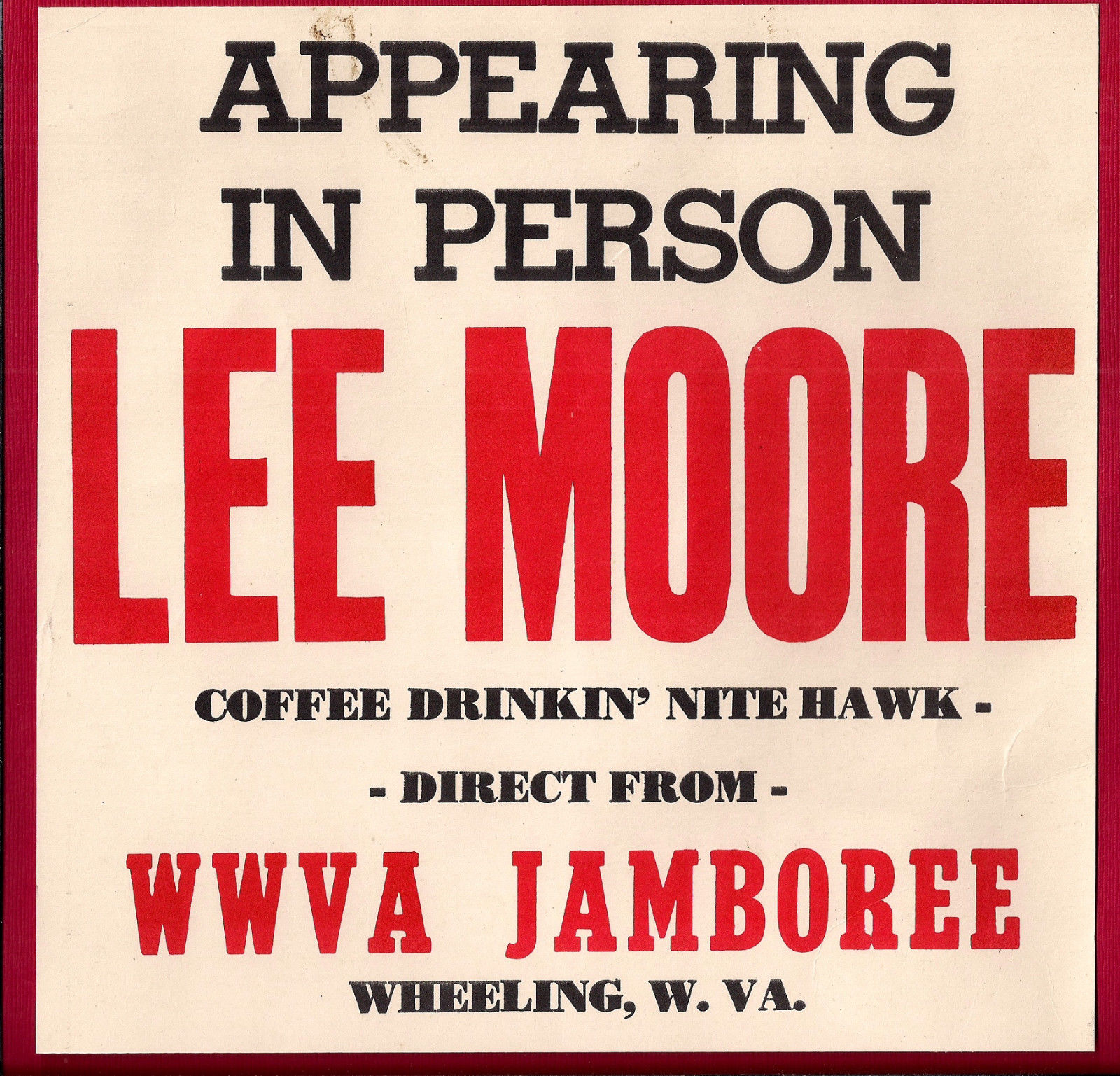 Title (ebay affiliate link): Wheeling WV, ad card for WWVA radio country star Lee Moore, Nite Hawk, ca 1950s