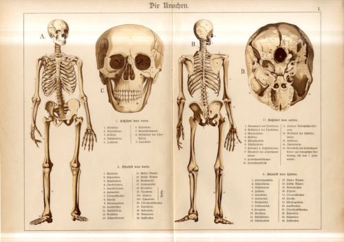 Title (ebay affiliate link): 1882 HUMAN SKELETON SKULL Antique Chromolithograph Print FOLIO Schubert