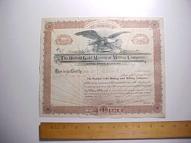 Title (ebay affiliate link): 1896 OXFORD GOLD MINING COLORADO SPRINGS STOCK SIGNED BY PRESIDENT VG
