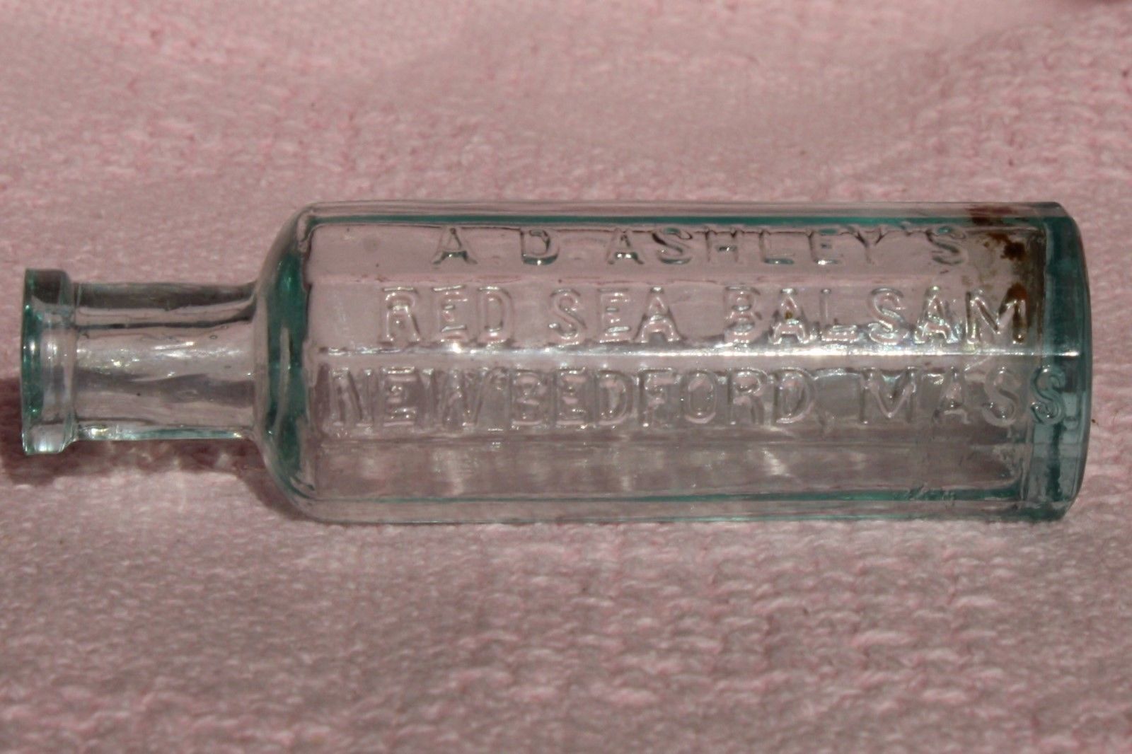 Title (ebay affiliate link): Antique Embossed Medicinal Bottle A D Ashleys Red Sea Balsam New Bedford, Mass