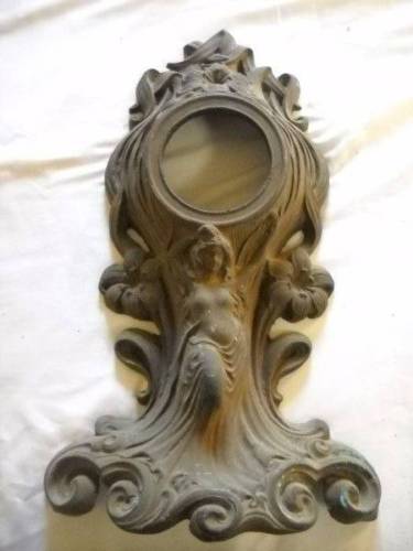 Title (ebay affiliate link): Antique Heavy Cast Iron Mantle Clock Body Frame Case Art Deco Style Woman Flowrs