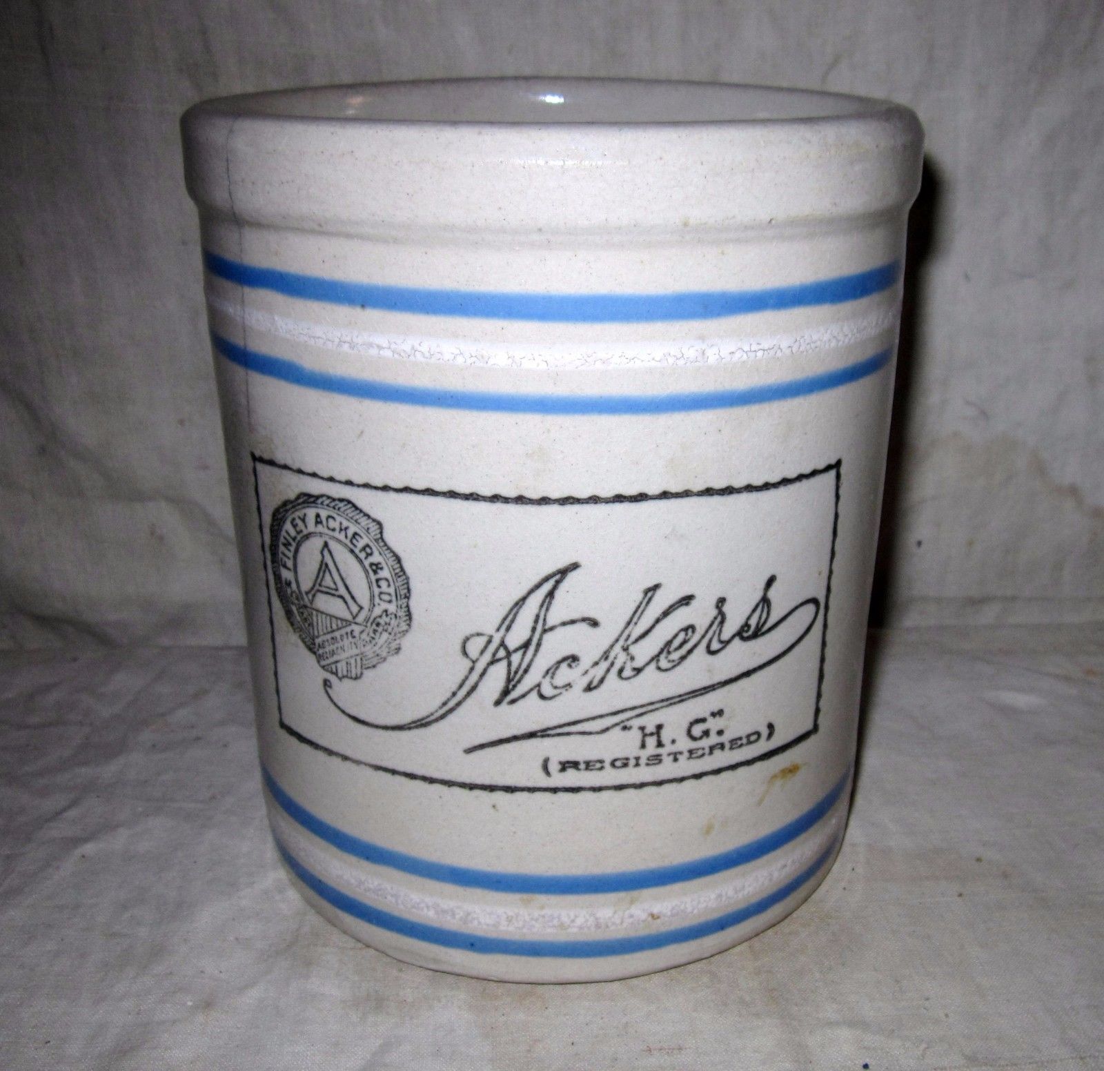 EARLY "FINLEY ACKERS & CO " CROCK