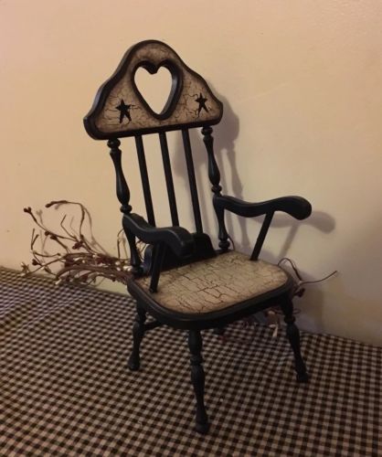 Title (ebay affiliate link): PRIMITIVE CRACKLE CHAIR WOOD BLACK TAN COUNTRY FARMHOUSE DECOR