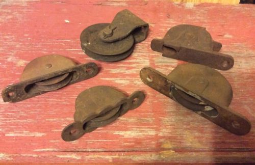 Old Antique Primitive Pulleys~Lot Of 5