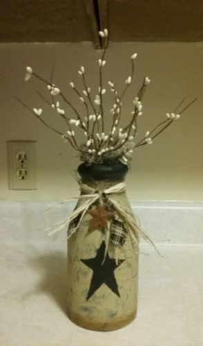 Title (ebay affiliate link): Primitive Crackle Star Milk Quart bottle & pips-Rustic Country Farmhouse Decor