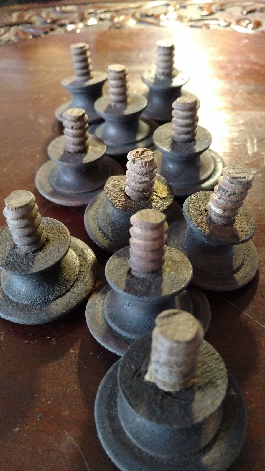 (10) Primitive North Carolina Wood Thread Cabinet Pulls Knob s Antique