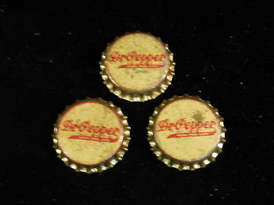 VINTAGE LOT OF 3 1920-1930 DR PEPPER SODA BOTTLE CAPS CORK LINED UNUSED
