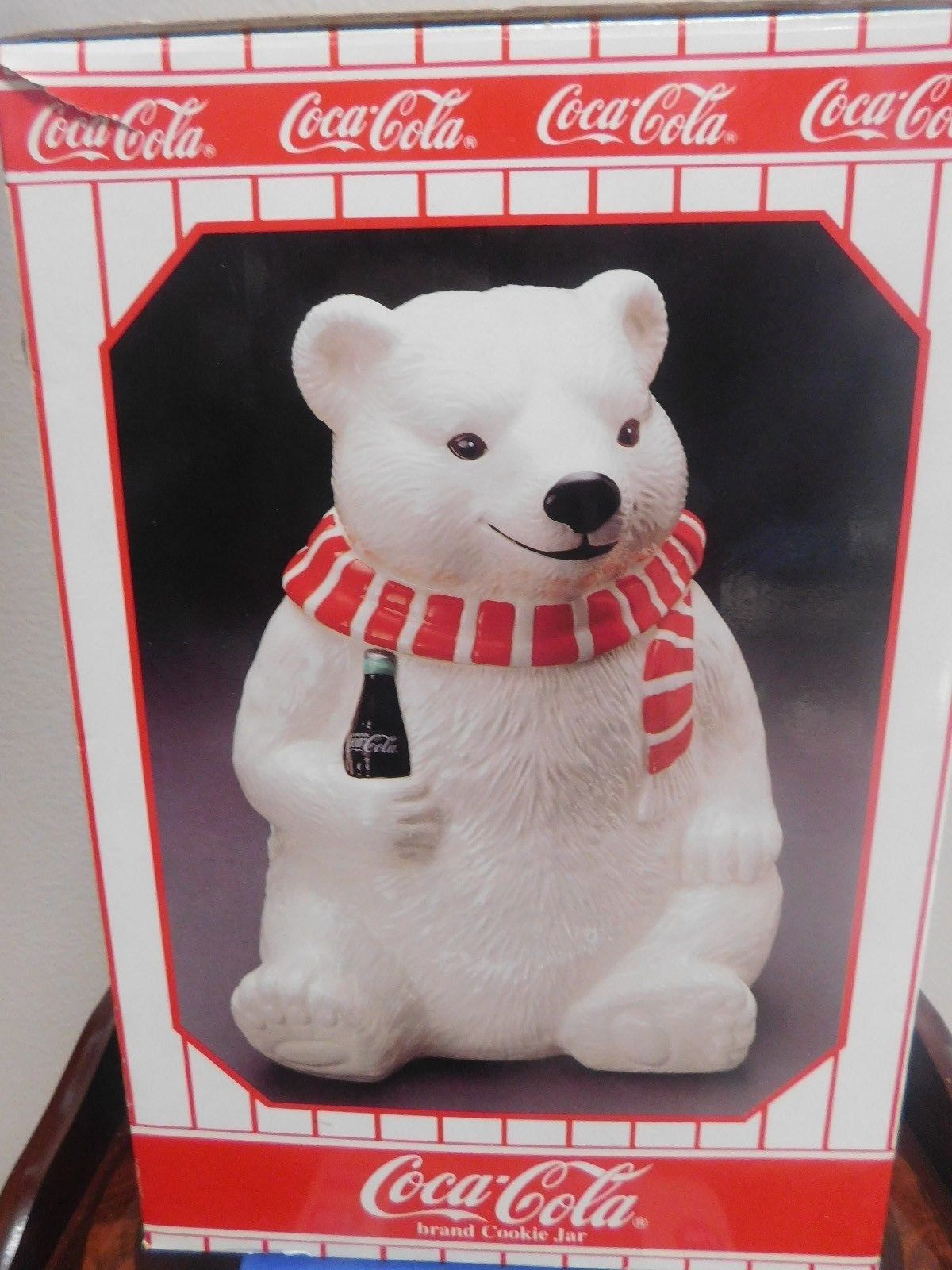 Title (ebay affiliate link): NIB Vintage Coca Cola Company Polar Bear Cookie Jar 1996 "Always Cool" 91051