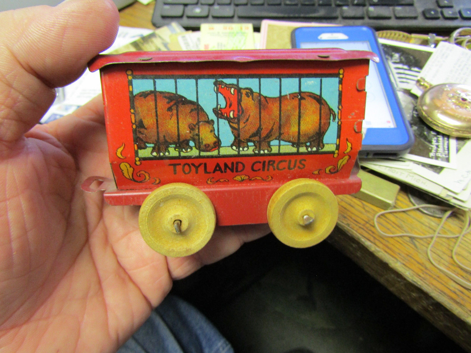 RARE 1920''S OHIO ART antique Tin Litho "Toyland Circus" TRAIN CAR #1