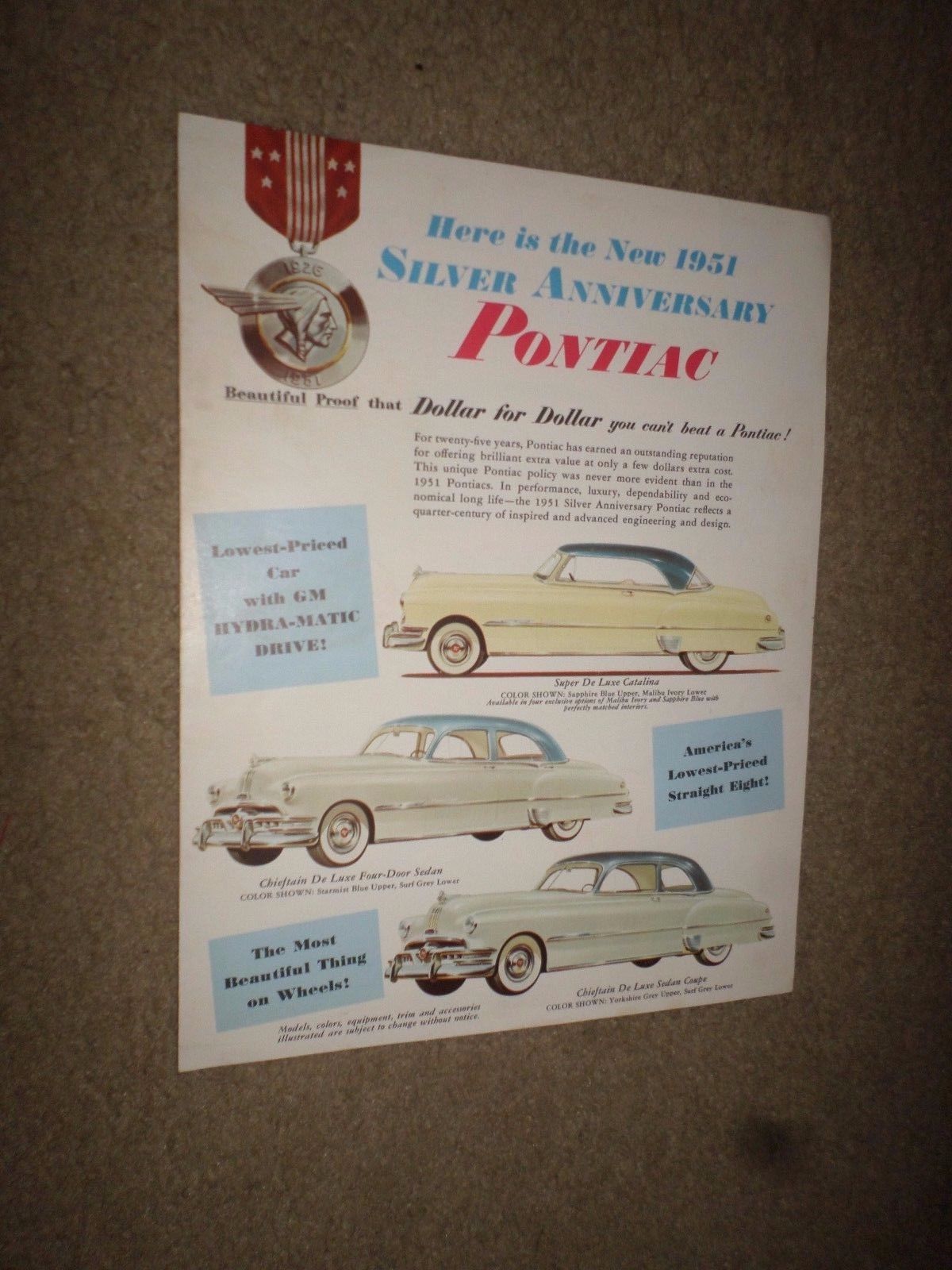 Title (ebay affiliate link): 1951 Pontiac "Catalina-Chieftain-Sedan Delivery-Wagon" Car Dealer Sales Brochure
