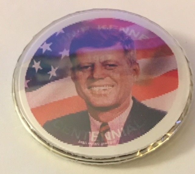 Title (ebay affiliate link): Neat 2 1/4" JFK Centennial Flasher Pinback Button