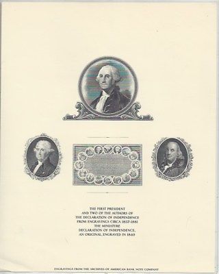 Title (ebay affiliate link): American Bank Note Company engraving with miniature Declaration of Independence