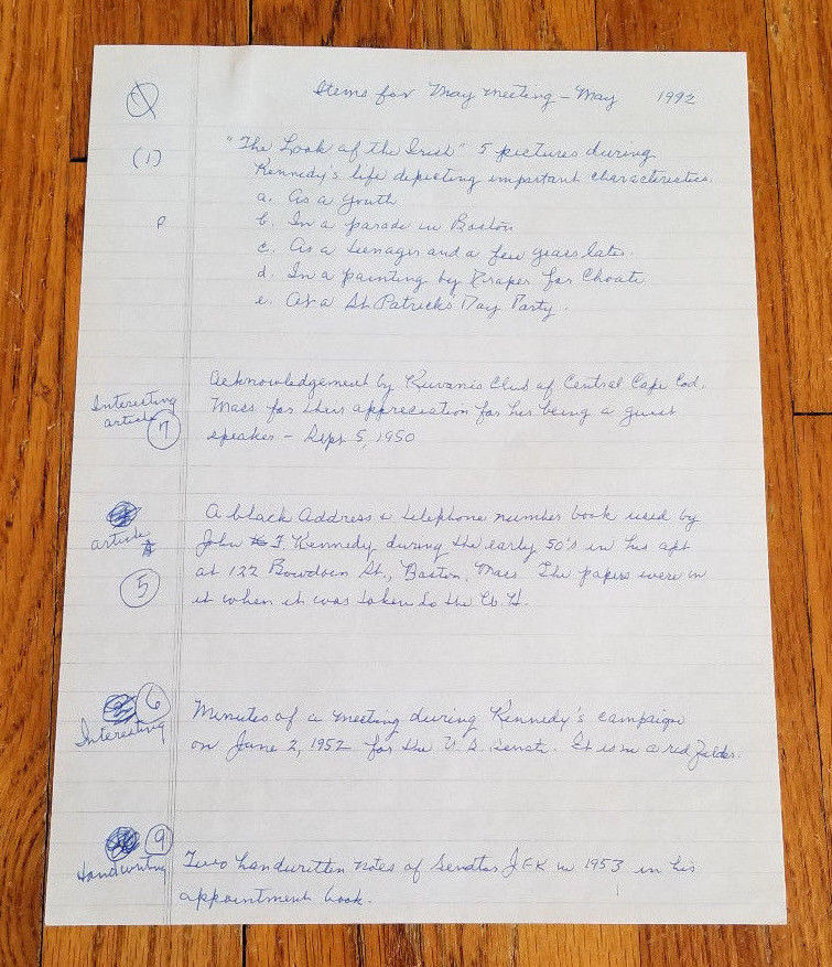 Title (ebay affiliate link): Original JFK Sec Evelyn Lincoln Handwritten List w/ Historic Content JFK''s Items