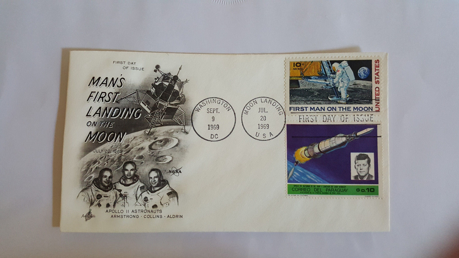Title (ebay affiliate link): Original NASA Space Moon Landing JFK Stamped First Day Cover FDC 7/20/69