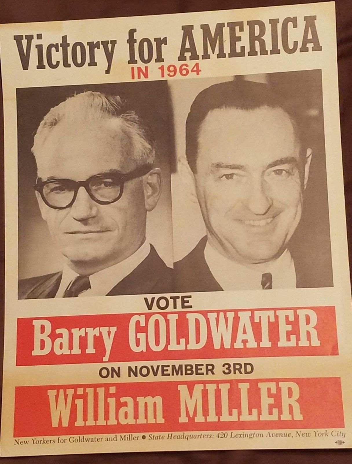 Title (ebay affiliate link): Barry Goldwater - William Miller 1964 NY Presidential Poster 11" X 14"
