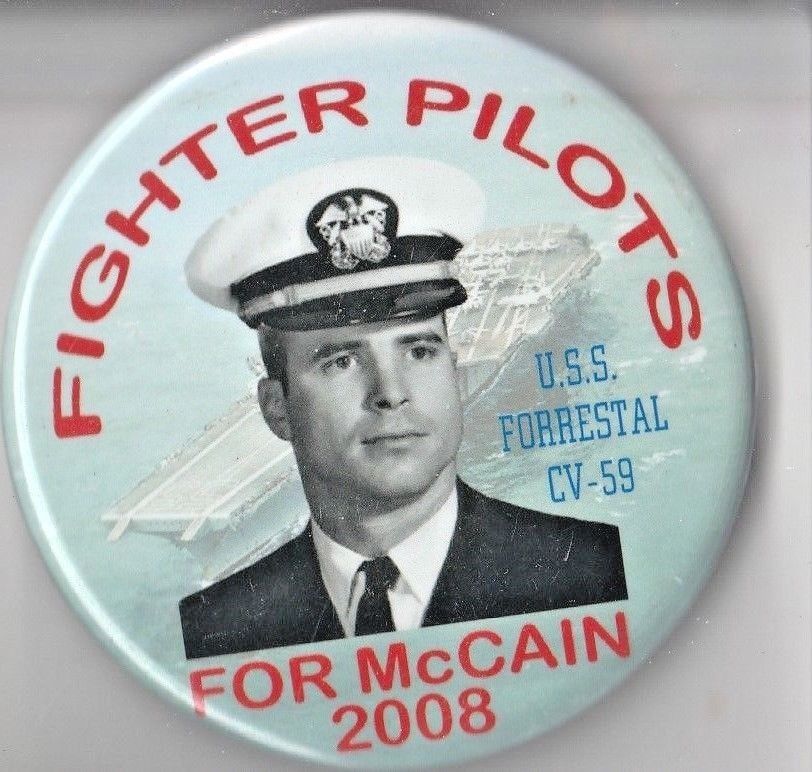 Title (ebay affiliate link): FIGHTER PILOT Badge JOHN McCAIN Button USS FORESTALL Pin 2008 Obama Campaign POW
