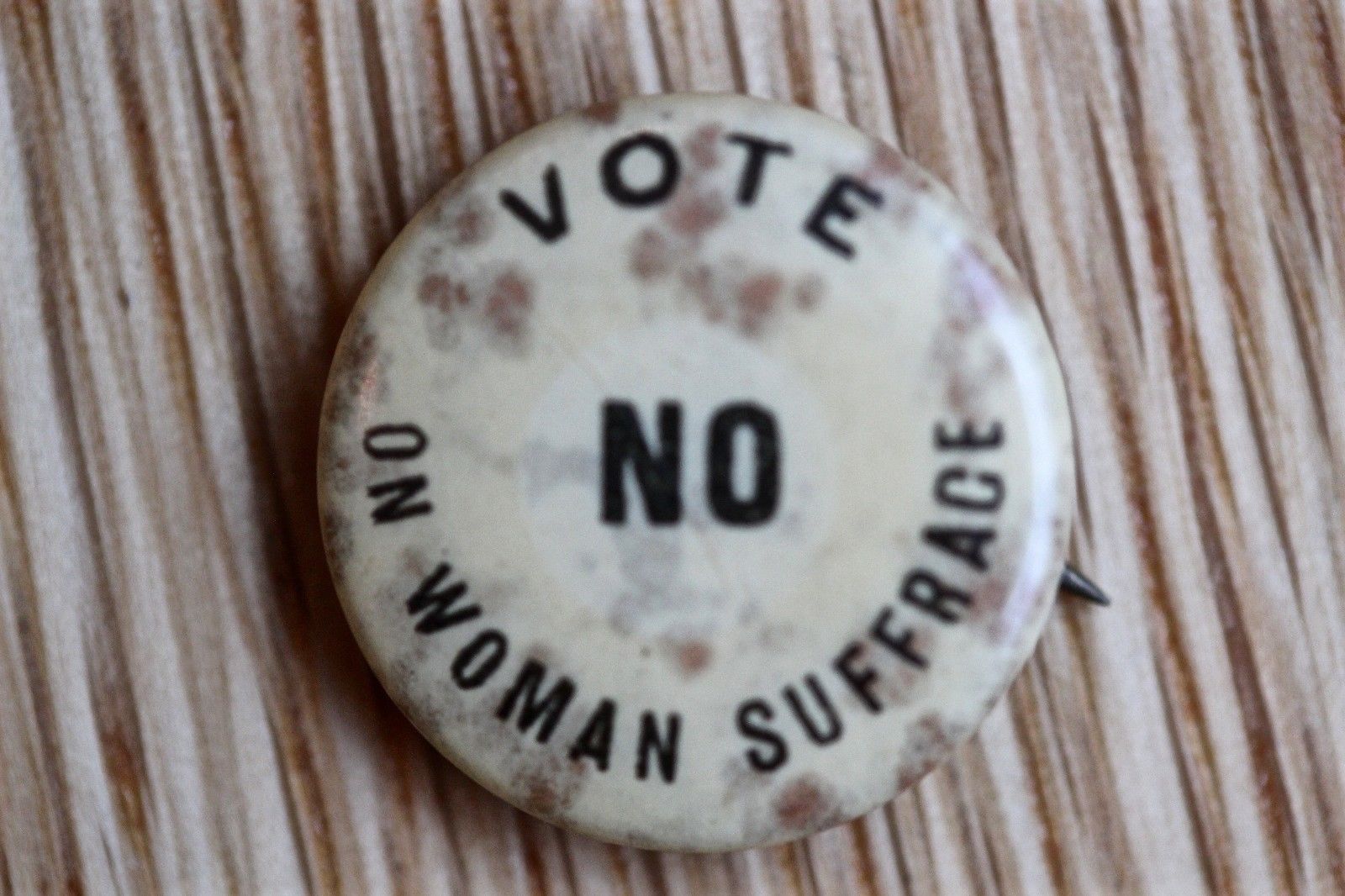 Title (ebay affiliate link): Original Anti Woman''s Suffrage Voting Rights Political Button Circa 1915. Ehrman