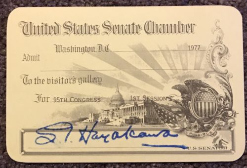 Title (ebay affiliate link): Rare S. I. HAYAKAWA United State Senate Pass 1977 VERY RARE !!