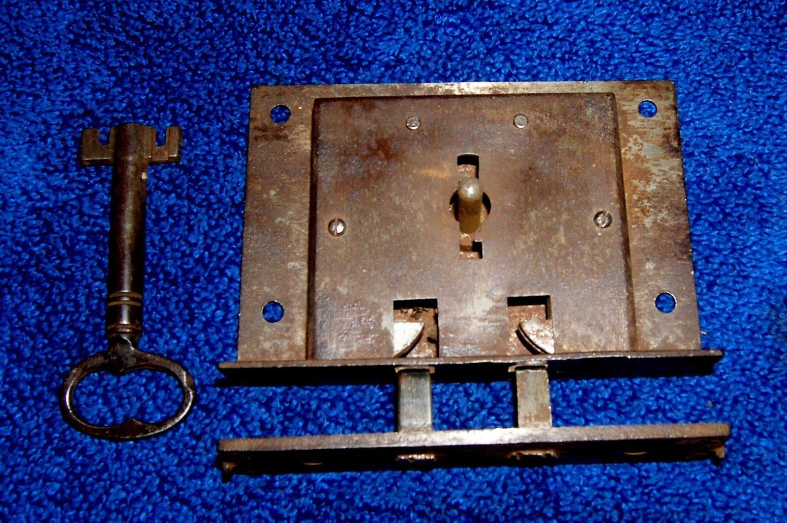 Large Antique Trunk Lock Furniture 3 inch warded double bitted key 1880s?
