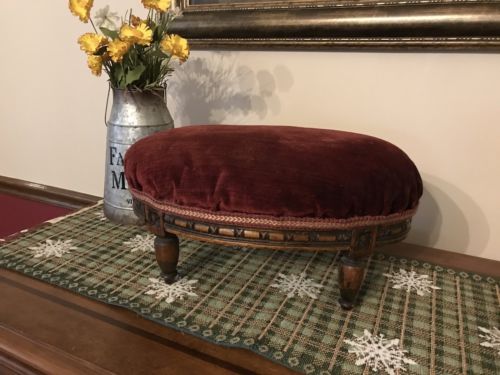 Antique Red/Velvet OTTOMAN FOOTSTOOL POUFFE