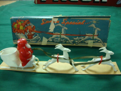 Title (ebay affiliate link): VINTAGE PLASTIC SANTA,SLEIGH w/2 REINDEER,ORGINAL BOX
