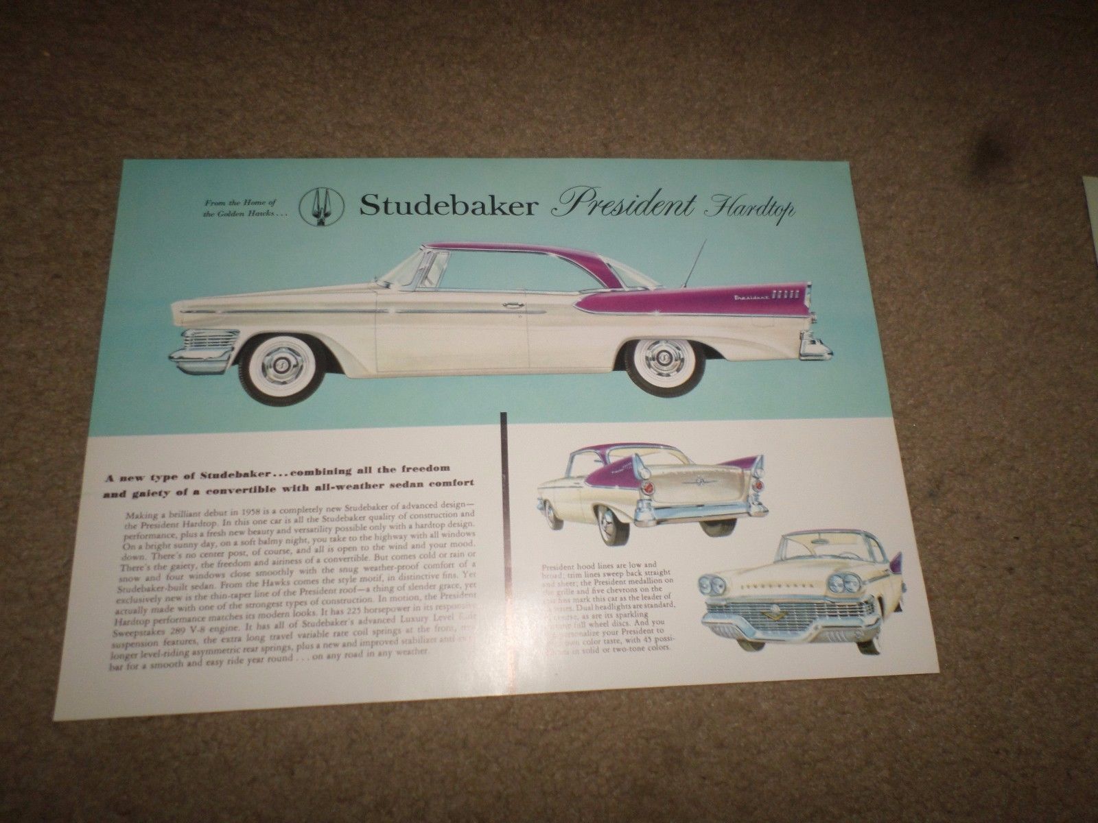 Title (ebay affiliate link): 1958 Studebaker "President Hardtop" Car Dealer Sales Brochure