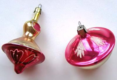 2 Vintage Glass Christmas Xmas Ornaments - Spins