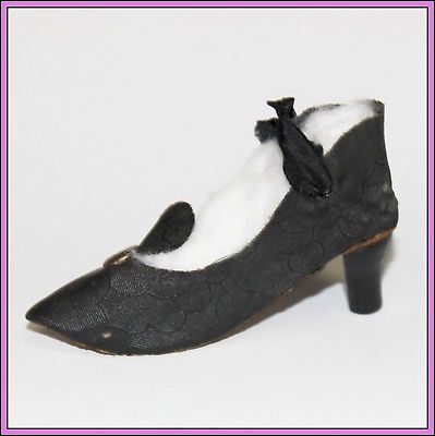 Vintage Antique Miniature Doll Salesman Sample Wooden High-Heel Ladys Shoe Black