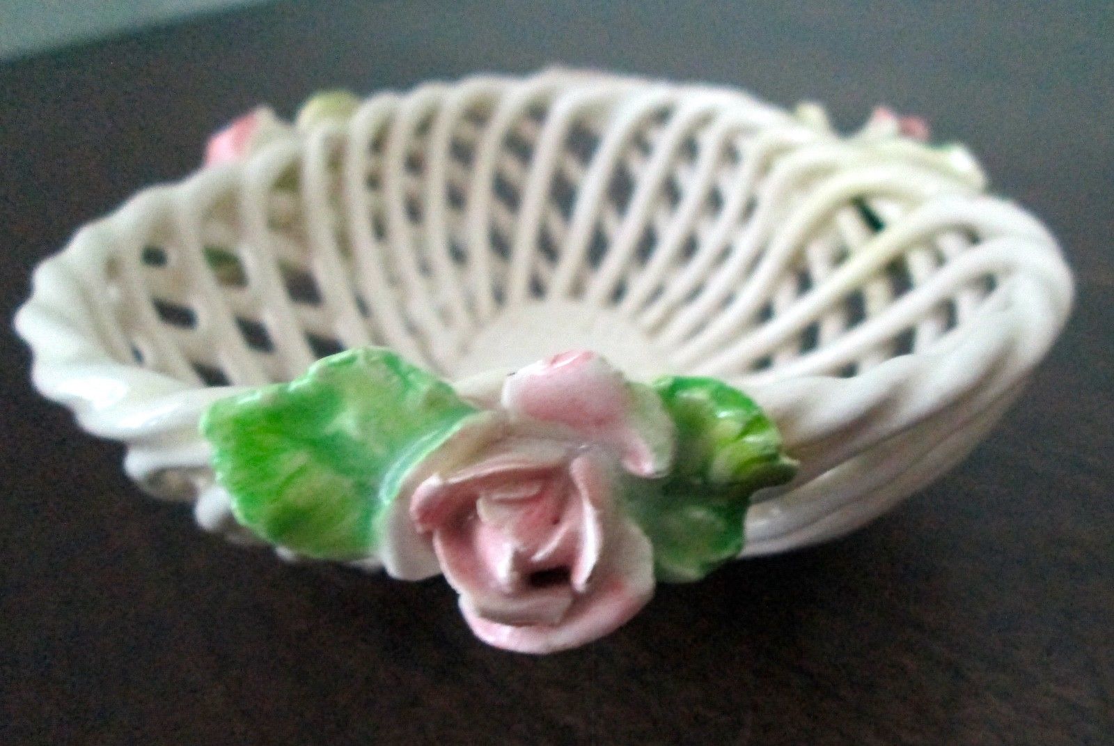 Title (ebay affiliate link): Capodimonte Porcelain Heart Shaped ROSE Basket ITALY, 3.5" Wide and 1.25" Deep
