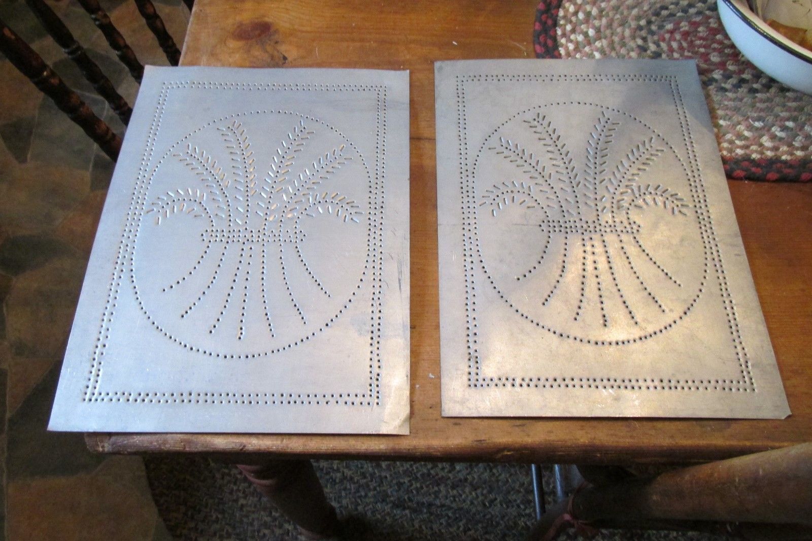 Title (ebay affiliate link): ANTIQUE VINTAGE Country tin punched WHEAT cabinet tin panels