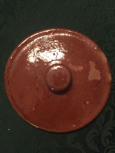 NICE 19TH C PA REDWARE PRESERVES JAR LID
