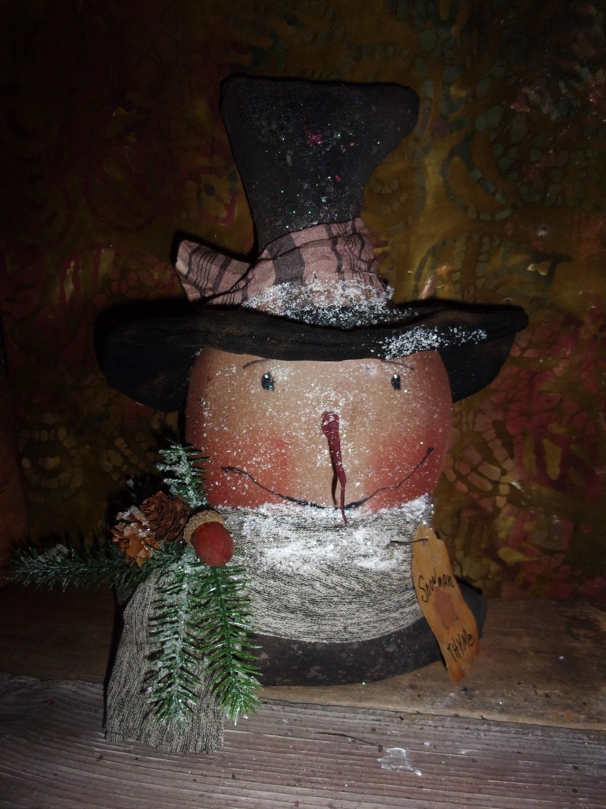 Title (ebay affiliate link): ** Primitive 12x7in Large Sparkled Snowman Head shelf sitter old rusty doll**