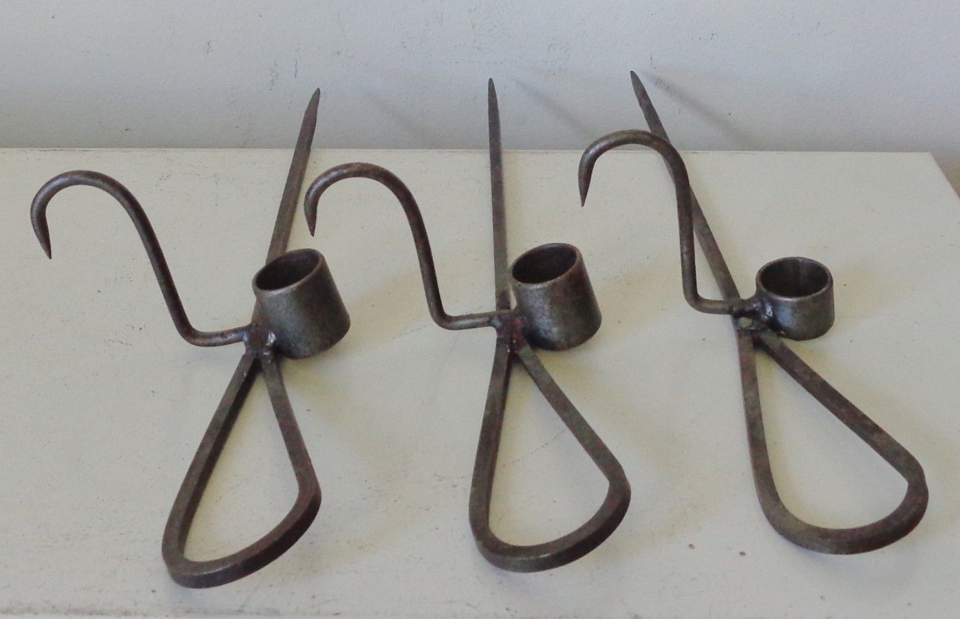 Title (ebay affiliate link): Lot of 3 vintage hand forged miners candle holders with hooks