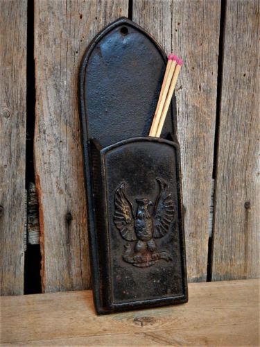 Title (ebay affiliate link): Antique Primitive Rustic Cast Iron Tall Hearth Match Holder EAGLE Image