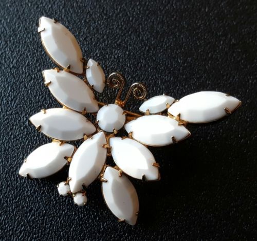 Title (ebay affiliate link): Vintage Brooch Pin Butterfly Figural Marquise Round Milk Glass Rhinestone G94